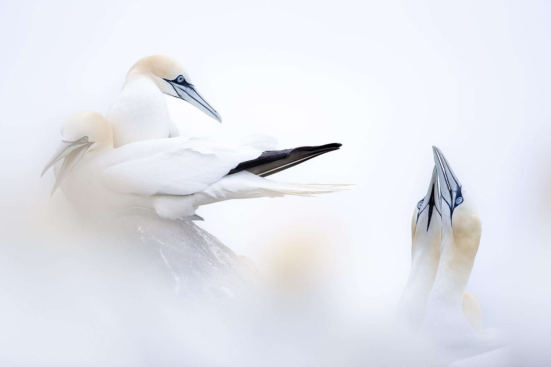 Years I went to the Saltee islands in Ireland with a group of friends to photograph sea birds. Even though I really enjoyed the puffins, guillemots and razorbills, nothing could have prepared me for the beauty of the Gannet colony. I was so flabbergasted that I was not able to make a single good image that first time. After coming back home, I had enough time to think of the wasted opportunities. I went back two more times with ideas in my mind to create images that would do justice to these amazing birds.